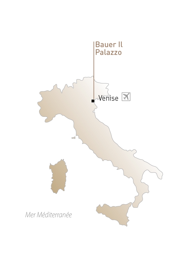 Chandeliers de Murano, tentures de soie, mosaïques, marbre, antiquités, mobilier d’acajou et de merisier, marqueterie raffinée… Résider au Bauer Il Palazzo, c’est un peu habiter Venise, à la manière des élégants du XVIIème siècle. Avec quelques plaisirs du jour en plus. Celui de prendre son petit déjeuner sur la terrasse du 7ème étage avec vue grand écran sur la basilique Saint-Georges, à moins de préférer la terrasse dessinée au ras des eaux de la lagune, celui de savourer l’une des meilleures cuisines de la Cité, servie au restaurant De Pisis… Sans oublier le SPA installé juste en face, sur l’île de la Giudecca, à l’abri d’un ancien monastère devenu Palladio, une autre adresse du groupe Bauer. Au Bauer Il Palazzo, c’est un peu l’âme de la ville qui prend ses quartiers d’excellence.
