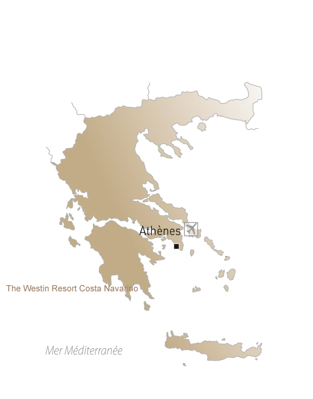 Largement épargnée par le tourisme de masse, Costa Navarino cultive des valeurs culturelles, des traditions et une histoire de plus de 4.500 ans, qui s’associent à merveille avec l’un des plus beaux paysages de la Méditerranée. Ici, vous découvrirez des lieux et des tombeaux de l’ère mycénienne, des temples classiques, des églises byzantines et des châteaux médiévaux. Le paysage est composé de collines et de montagnes escarpées, de plus il est protégé par des baies et leurs plages et de larges vallées d’oliveraies. A proximité, les cités de Mistra, ainsi que l’antique Messine et le Palais de Nestor, sont facilement accessibles par la route. Les 445 chambres et suites de luxe, dont 123 avec piscine privée à débordement, offrent un accès à une vaste piscine commune et reflètent parfaitement l’esthétique apaisante de Westin. Reposez-vous dans le lit exclusif Heavenly Bed® et profitez d’un accès Internet haut débit, de la messagerie vocale, de films et du minibar.